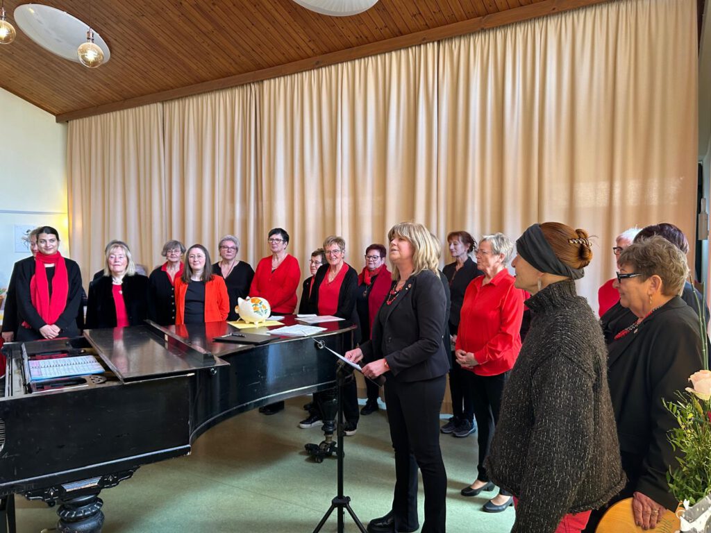Sabine Junker würdigte den Einsatz der Sängerinnen für ihren Frauenchor, den inneren Zusammenhalt und die Freude an gemeinsamen Aktivitäten. Die Ausrichtung verschiedener Events wie Frühschoppen am Vatertag, Weinstand im Herbst und die Teilnahme am Weihnachtsmarkt ist zum festen Bestandteil der öffentlichen Auftritte geworden. Auf die tatkräftige Unterstützung von Familienangehörigen wird dabei dankend zurückgegriffen. Neu entstanden ist eine Webseite, die für Interessierte vielseitige Informationen zum Frauenchor, zu Veranstaltungen und Terminen bereithält.